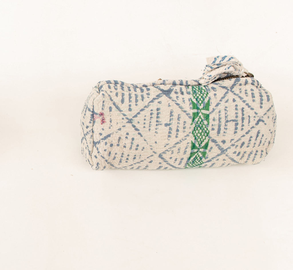 Do you love a light, calm look? Vintage Pearl is our white/cream sari pouch with delicate block print. It gathers your small essentials – makeup, jewelry, keys, and earbuds – and adds a touch of elegant boho charm to your bag. Each pouch is unique, so the one you choose is completely yours.